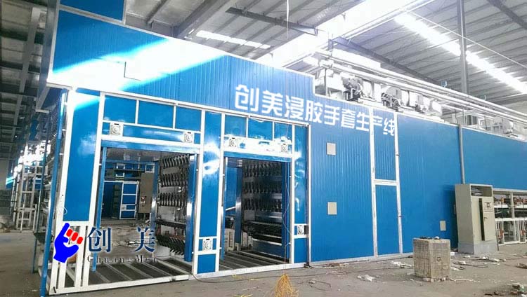 創(chuàng)美勞保手套浸膠生產(chǎn)線長(zhǎng)度有45米,38米,35米,24米等多種規(guī)格,采用連續(xù)生產(chǎn)方式和直浸方式,成膜均勻,色澤艷麗,各種型號(hào)規(guī)格可以同一線生產(chǎn),自動(dòng)化程度高、產(chǎn)量大,